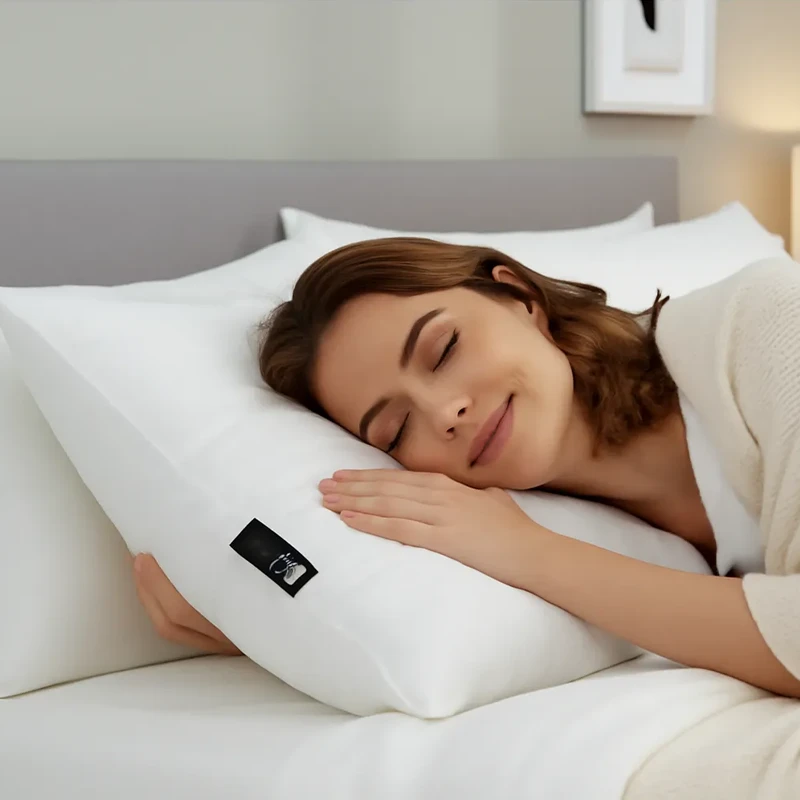 - La fibra siliconada entrega un soporte firme para mantener alineado el cuello y la cabeza al dormir de lado.