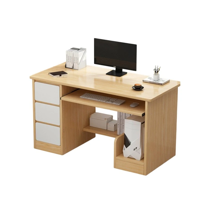 Moderno y funcional, este escritorio compacto de 100×40×74.6 cm combina madera clara con cajones blancos. Ideal para espacios reducidos, ofrece almacenamiento con estilo gracias a sus cajones y estantes abiertos.